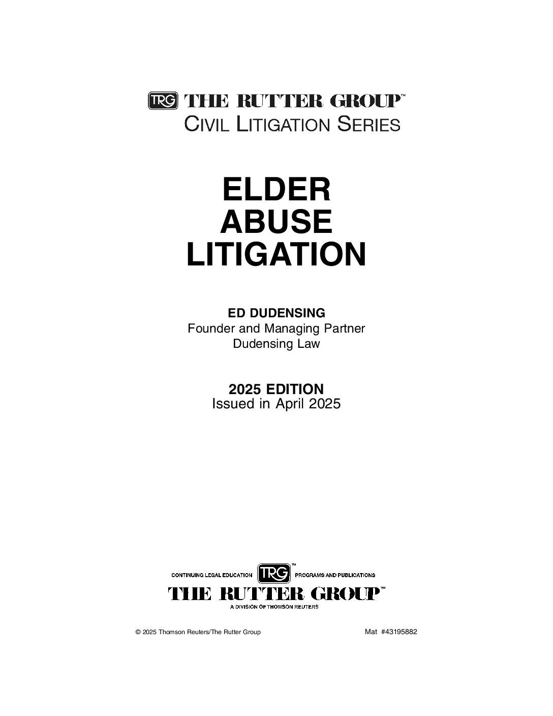 Dudensing Law has quite literally “written the book” on Elder Abuse Litigation in the State of California. As all attorneys who practice in this state know, the “Rutter Group” is the most widely relied upon secondary source for guidance on legal matters by judges and practitioners alike. Rutter Group treatises have regularly been cited as authority by the California Supreme Court, California Courts of Appeals, and Superior Courts across the state. Every superior court judge in the state has access to the electronic versions of all Rutter Group treatises and, for this reason among others, the content of Rutter Group treatises is highly influential in the creation and application of law. In the field of Elder Abuse Litigation, the Rutter Group has a single author, Ed Dudensing. The Rutter Group turned to Mr. Dudensing for this important role as a result of his long-standing and widely recognized expertise in the field of elder abuse litigation.